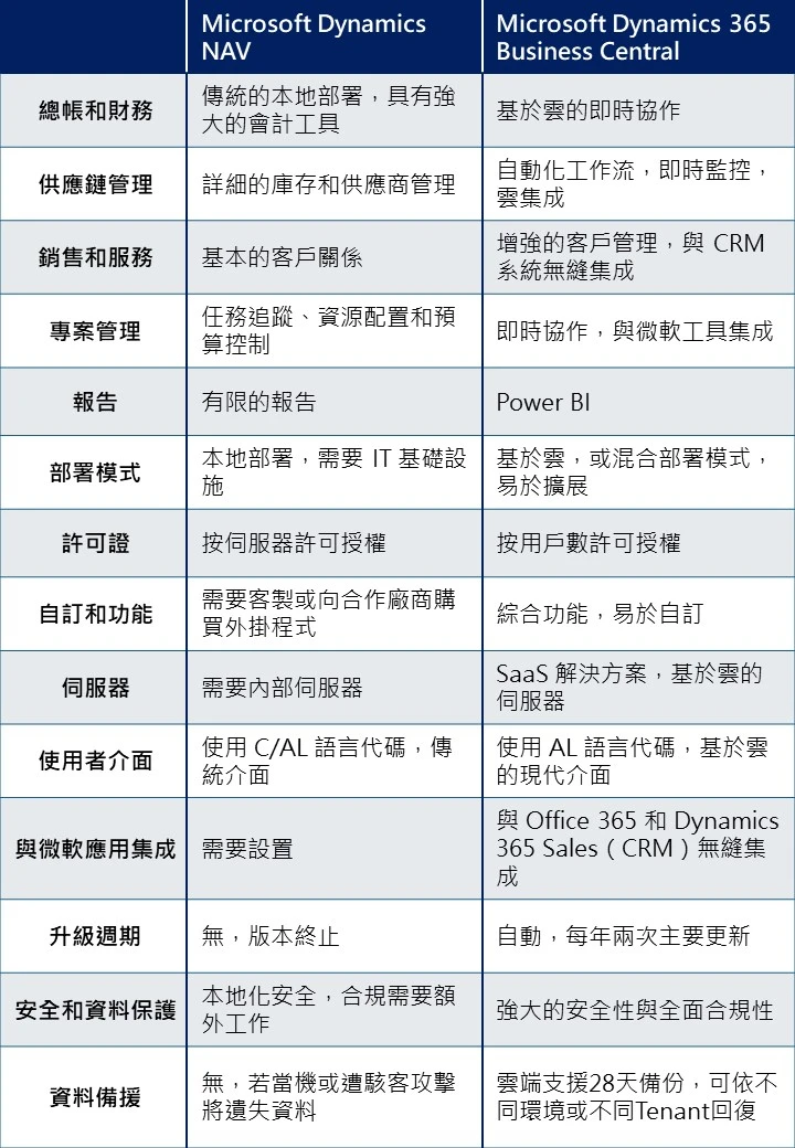 Navision與Business Central的差異?1 1 大面向分析